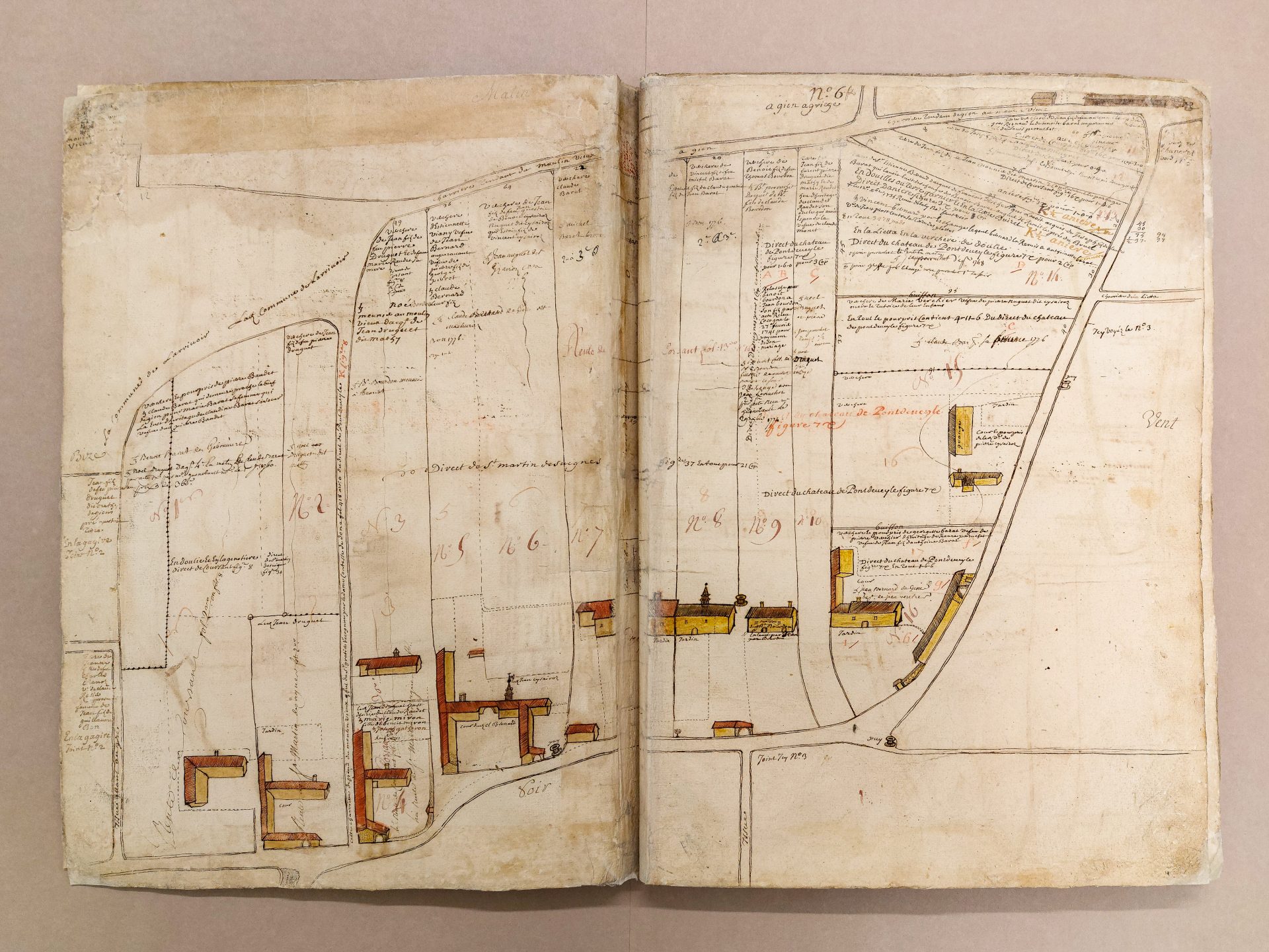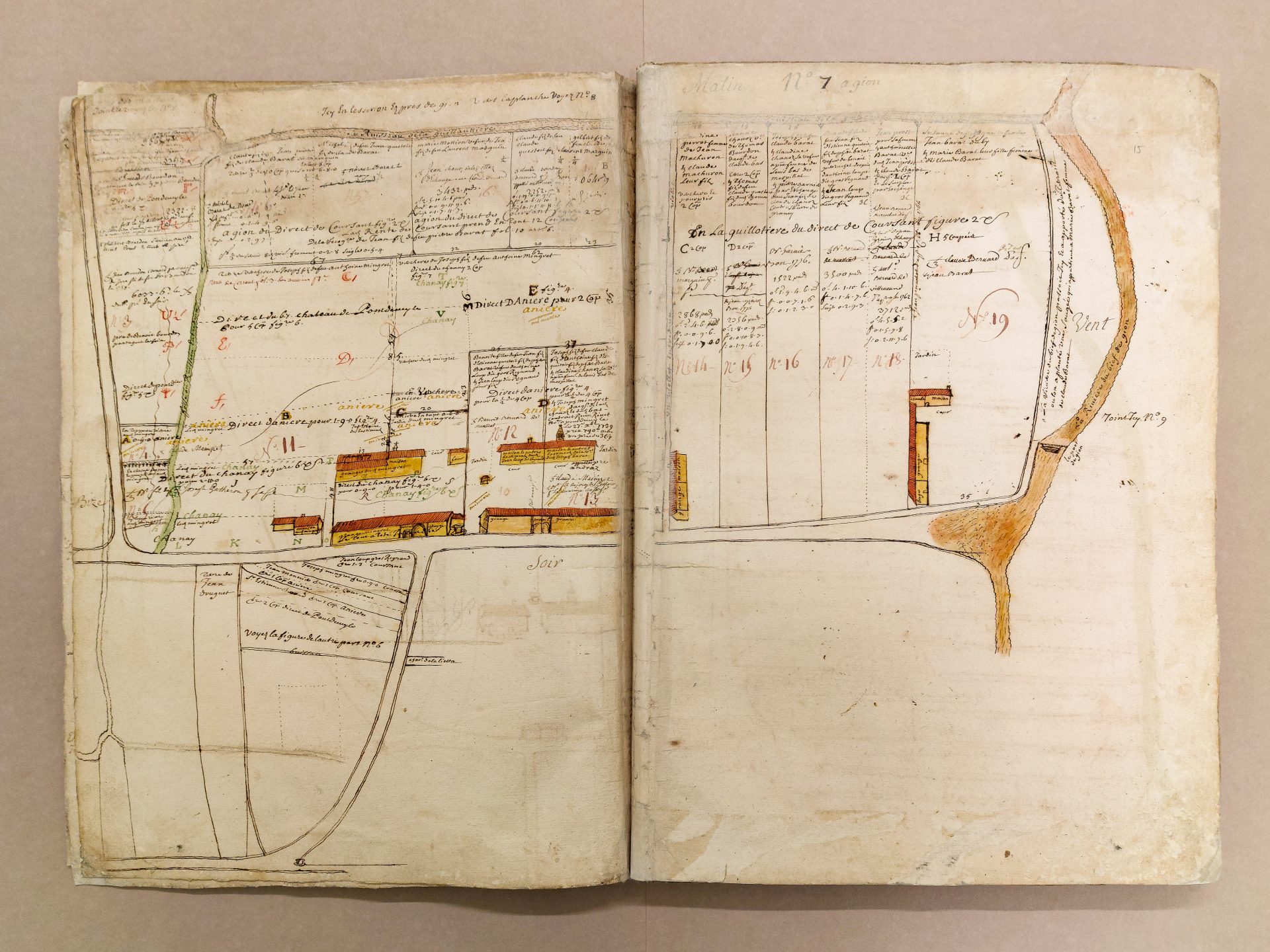 L’atlas de Grièges se présente sous la forme d’un gros livre cartonné. Il a été rédigé de 1736 à 1738 par Me Paul Dumas, notaire à Pont-de-Veyle.