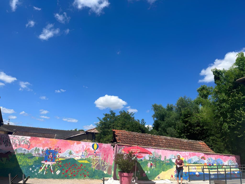 Accompagnés de l’artiste locale Rachel Duby, tous les élèves — de la maternelle au CM2 — ont participé à la réalisation d’une magnifique fresque murale. Chacun a pu laisser sa trace, un coup de pinceau, une idée, une touche de couleur, dans une œuvre collective pleine de vie et de gaieté.