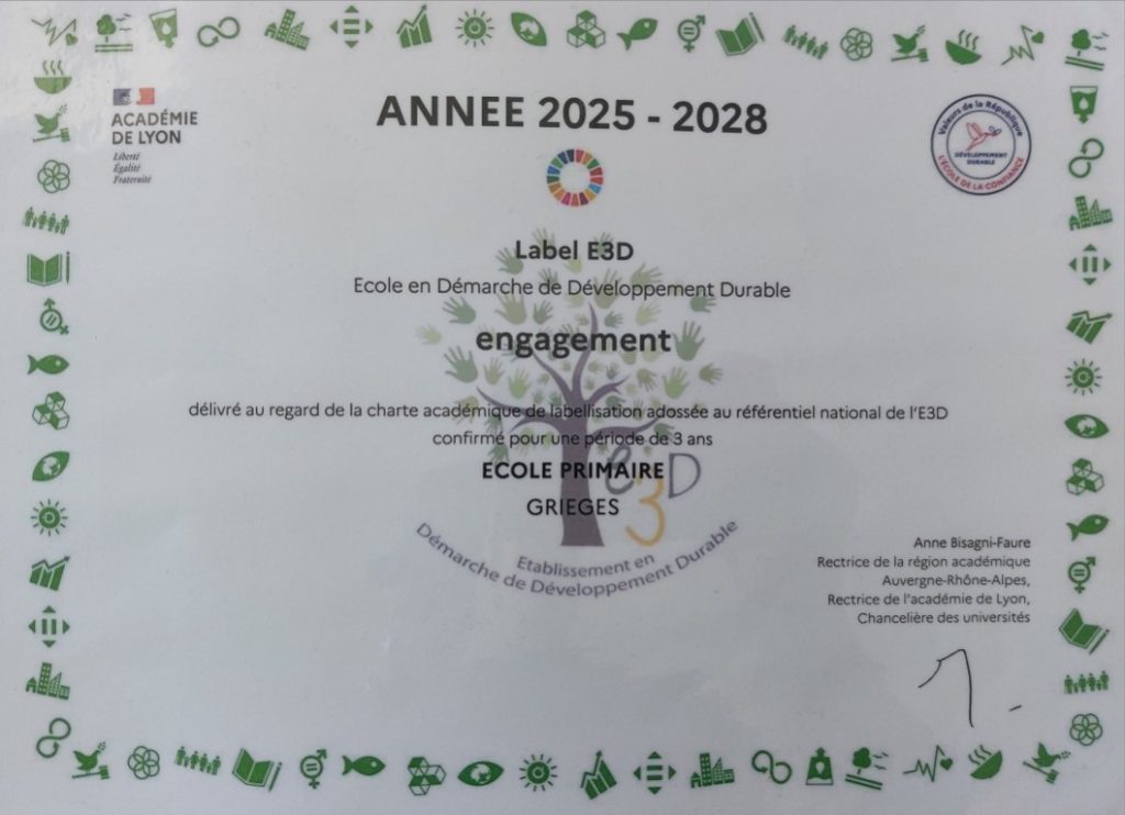Notre école a obtenu le label E3D pour sa démarche et son engagement pour le développement durable.